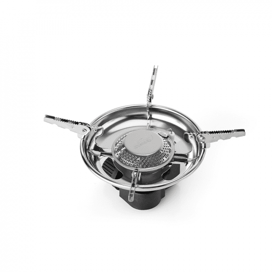 Раскладные лапки конфорки горелки позволяют использовать посуду большого размера и приготовить пищу для нескольких человек. Теплоотражающий экран круглой формы экономит топливо и эффективно отражает тепло газовой горелки на дно посуды, увеличивая тем самым КПД.