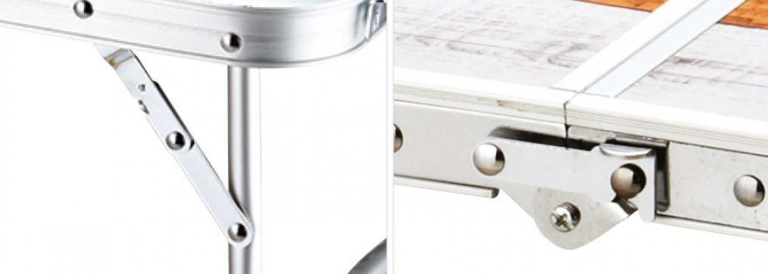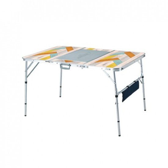 Стол с регулируемой высотой. Алюминиевые ножки стола фиксируются в трех положениях на высоте 70, 55 или 30 см. В центре столешницы отсек для плиты или гриля (61 х 38 см).