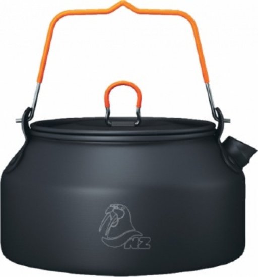 Маленький туристический чайник АК-118 NZ объемом 0,9 л из анодированного алюминия. Отлично подходит для того, чтобы вскипятить воду на примусе, газовой горелке или костре. Носик правильной формы позволяет аккуратно разливать воду по чашкам. Складная ручка, покрытая не нагревающимся пластиком, удобна для подвешивания чайника над костром.