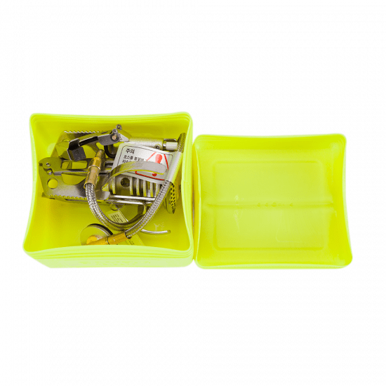 Газовая горелка компактно уложена в пластиковый кофр для транспортировки. Оснащена пьезоподжигом. Специальная сетка в головке горелки объемного задувания пламени ветром.