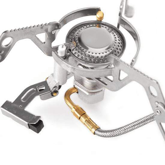 Приборы со шлангом:Для большей безопасности и удобства некоторые горелки, лампы и обогреватели соединяются с газовым баллоном через шланг. Это позволяет отдалить прибор от баллона. В холодный период баллон можно на ночь положить, например в спальный мешок, а утром подсоединить его к шлангу горелки и готовить, оставив баллон в спальнике. У некоторых устройств для этого есть удобные модификации с длинным шлангом 50 см.