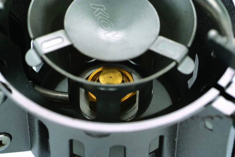 Система прочистки форсунки:Форсунка время от времени загрязняется продуктами сгорания топлива. Особенно это касается бензиновых горелок, а также газовых приборов, где баллон устанавливается в перевернутом виде. Компания KOVEA разработала систему прочистки форсунки без разборки прибора, что значительно упрощает этот процесс.