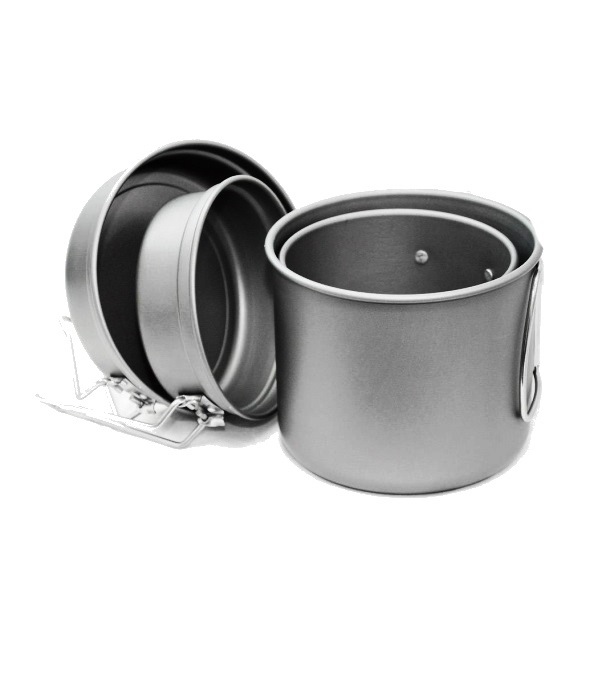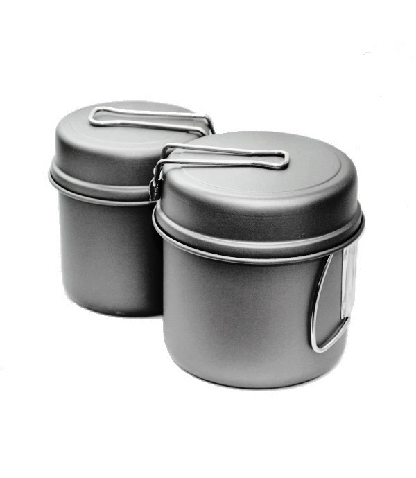 Внутрь входит газовый баллон 230 гр. и горелка титановая. Получается идеальный комплект. Кастрюли для готовки, крышки для еды. Минусов пока не обнаружила. Титан полегче будет, но стоит неразумно дорого.