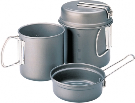 Kovea Escape VKK-ES01 — индивидуальный набор легкой походной посуды из алюминия с холодным анодированием, рассчитанный на 1-2х человек. Набор состоит из двух котелков объемом 1 л и 0,6 л с крышками, которые могут использоваться как полноценные сковородки. Анодированный алюминий обладает повышенной теплопроводностью, в связи с чем пища готовится значительно быстрее. Материал также показывает прекрасную устойчивость перед окислением, даже во время длительной эксплуатации.